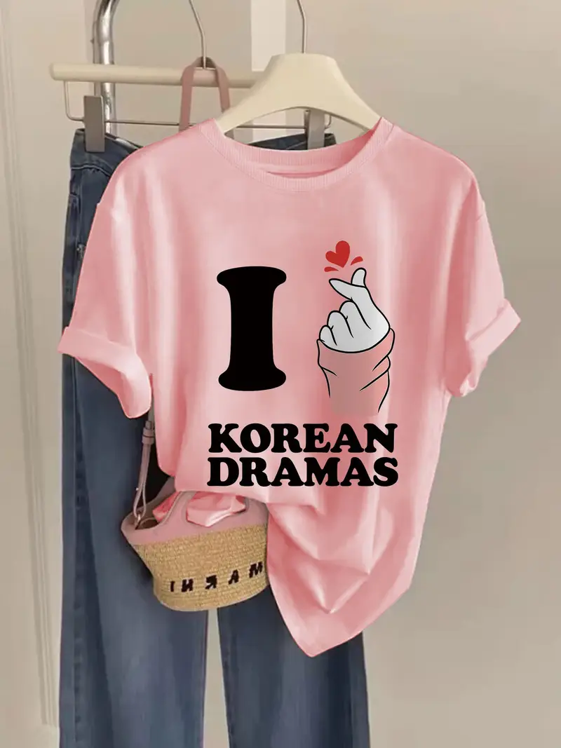 La playera “I Love Korean Dramas” combina la moda minimalista coreana con un toque juvenil. Es fácil de combinar con jeans, faldas o shorts, y perfecta para crear un look casual con encanto.